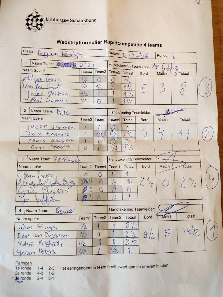 Donderdag 12 Maart was de 1e speeldag van LISB rapid. Wij speelden ieder 25 minuten + 5 sec. per zet. In de 1e rond verloren wij nog van sterk spelend Reuver. Daarna wisten wij zowel tegen Kerkrade en DJZ overtuigend te winnen. Zie uitslagen van 1e speeldag helemaal onderaan!!!