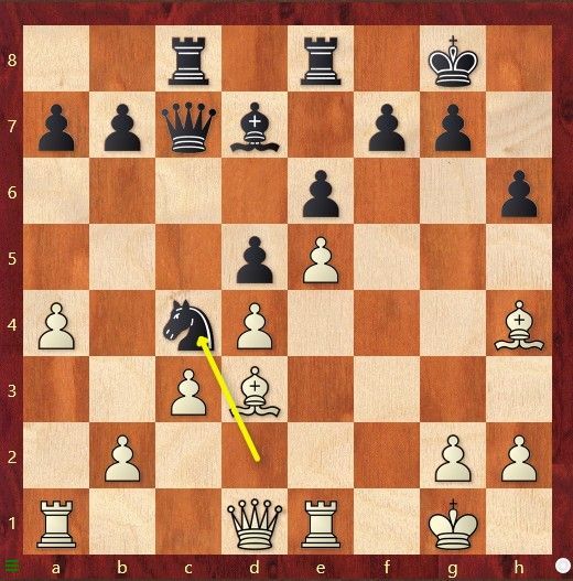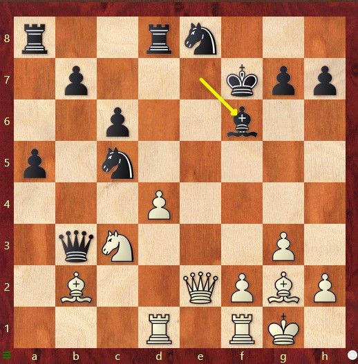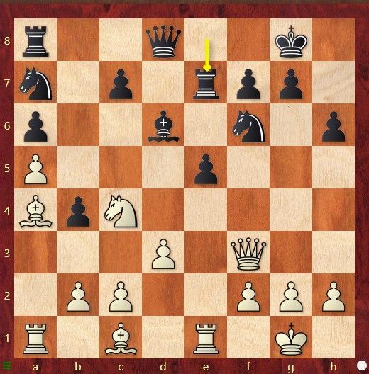 Zwart zijn paard op c5 staat aangevallen. David Miedema speelde 19....Lf6 om na 20.cxd5 de loper op c3 te slaan. Wat speelde Patrick hier, waarmee hij zijn sterke tegenstander onmiddellijk opgaf.