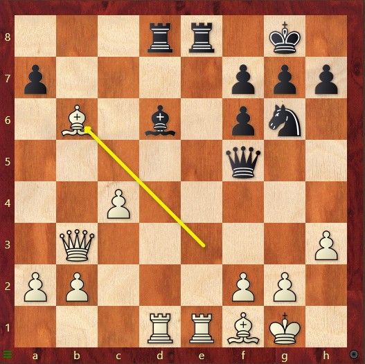 Er volgde een snelle remise tussen Stefan Spronkmans en Ludo Tolhuizen. Het was Rob Caessens (wit) die op bord 4 een mataanval kon opzetten tegen good-old Jos Sutmuller. Rob staat zeer goed, maar na de volgende zet is er geen verdediging meer voor zwart. Ziet U hoe Rob hier zijn dodelijke aanval opzette?